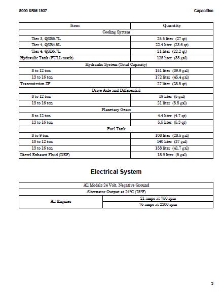 CAPACITIES AND SPECIFICATIONS
