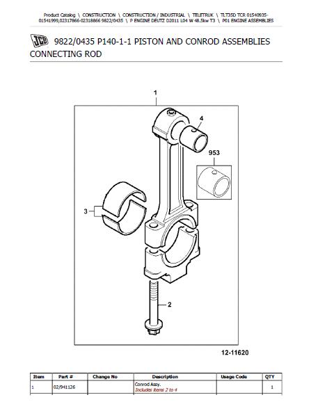 JCB TLT35D TCR Teletruk Parts Catalogue Manual (Serial Number: 01540935-01541999)