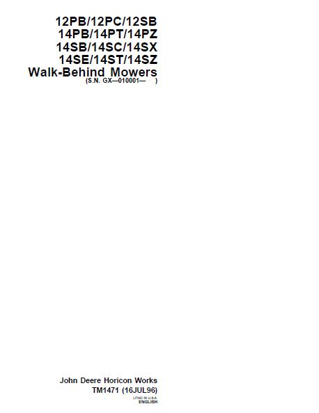 NO waiting, Buy from responsible seller and get INSTANT DOWNLOAD, Without wasting your hard-owned money on uncertainty or surprise! All pages are is great to have JOHN DEERE 14SZ WALK-BEHIND MOWER Service Repair Workshop Manual.