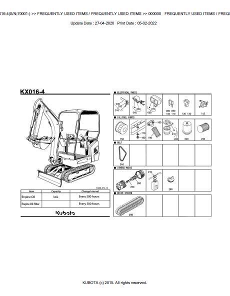 NO waiting, Buy from responsible seller and get INSTANT DOWNLOAD, Without wasting your hard-owned money on uncertainty or surprise! All pages are is great to have KUBOTA KX016-4 (SN: 70001 AND UP) EXCAVATOR Parts Manual.
