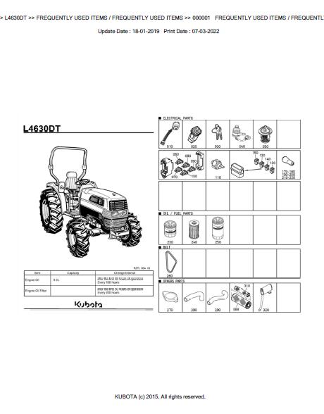 NO waiting, Buy from responsible seller and get INSTANT DOWNLOAD, Without wasting your hard-owned money on uncertainty or surprise! All pages are is great to have KUBOTA L4630DT TRACTOR Parts Manual.