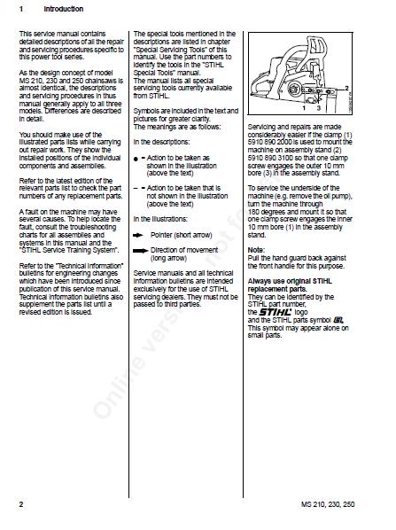 This is the Highly Detailed factory service repair manual for the STIHL MS 250 CHAINSAW, this Service Manual has detailed illustrations as well as step by step instructions,It is 100 percents complete and intact. they are specifically written for the do-it-yourself-er as well as the experienced mechanic.STIHL MS 250 CHAINSAW Service Repair Workshop Manual provides step-by-step instructions based on the complete dis-assembly of the machine. It is this level of detail, along with hundreds of photos and illustrations, that guide the reader through each service and repair procedure. Complete download comes in pdf format which can work under all PC based windows operating system and Mac also, All pages are printable. Using this repair manual is an inexpensive way to keep your vehicle working properly.