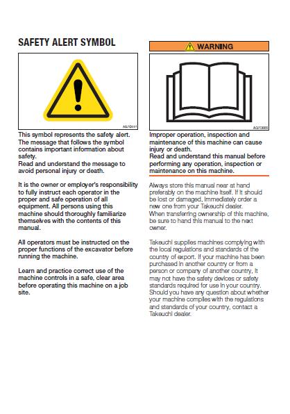This is the most complete Operation and Maintenance Manual for the TAKEUCHI TB1140 SERIES2 HYDRAULIC EXCAVATOR . Operation and Maintenance Manual can come in handy especially when you have to do immediate repair to your TAKEUCHI TB1140 SERIES2 HYDRAULIC EXCAVATOR .Operation and Maintenance Manual comes with comprehensive details regarding technical data. Diagrams a complete list of TAKEUCHI TB1140 SERIES2 HYDRAULIC EXCAVATOR parts and is a must for the will not be dissatisfied.