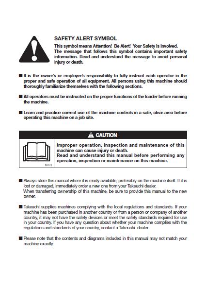 This is the most complete Operation and Maintenance Manual for the TAKEUCHI TL240 TRACK LOADER . Operation and Maintenance Manual can come in handy especially when you have to do immediate repair to your TAKEUCHI TL240 TRACK LOADER .Operation and Maintenance Manual comes with comprehensive details regarding technical data. Diagrams a complete list of TAKEUCHI TL240 TRACK LOADER parts and is a must for the will not be dissatisfied.