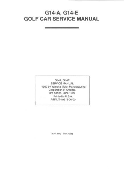 This is the Highly Detailed factory service repair manual for theYAMAHA G14-A GOLF CART, this Service Manual has detailed illustrations as well as step by step instructions,It is 100 percents complete and intact. they are specifically written for the do-it-yourself-er as well as the experienced mechanic.YAMAHA G14-A GOLF CART Service Repair Workshop Manual provides step-by-step instructions based on the complete dis-assembly of the machine. It is this level of detail, along with hundreds of photos and illustrations, that guide the reader through each service and repair procedure. Complete download comes in pdf format which can work under all PC based windows operating system and Mac also, All pages are printable. Using this repair manual is an inexpensive way to keep your vehicle working properly.