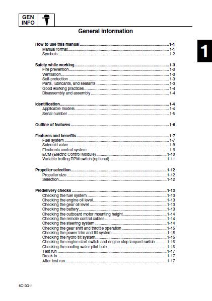 This is the Highly Detailed factory service repair manual for theYAMAHA OUTBOARD F60CET, this Service Manual has detailed illustrations as well as step by step instructions,It is 100 percents complete and intact. they are specifically written for the do-it-yourself-er as well as the experienced mechanic.YAMAHA OUTBOARD F60CET Service Repair Workshop Manual provides step-by-step instructions based on the complete dis-assembly of the machine. It is this level of detail, along with hundreds of photos and illustrations, that guide the reader through each service and repair procedure. Complete download comes in pdf format which can work under all PC based windows operating system and Mac also, All pages are printable. Using this repair manual is an inexpensive way to keep your vehicle working properly.